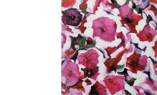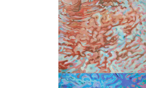 In recent works I have meld the drawing and painting practices to explore concepts of connectedness and fragmentation. Patterns are amplified or detroyed and recreated as a place to start the abstraction of the image . Some alterations of the image reveal traces of previous work, showing the process. The subsurface layers, though not always obvious, carry the history of the search for the external reference. The result is an ambiguity between the surface and the depths and between the seen and unseen, which provides the imagination with a space to wander and wonder.